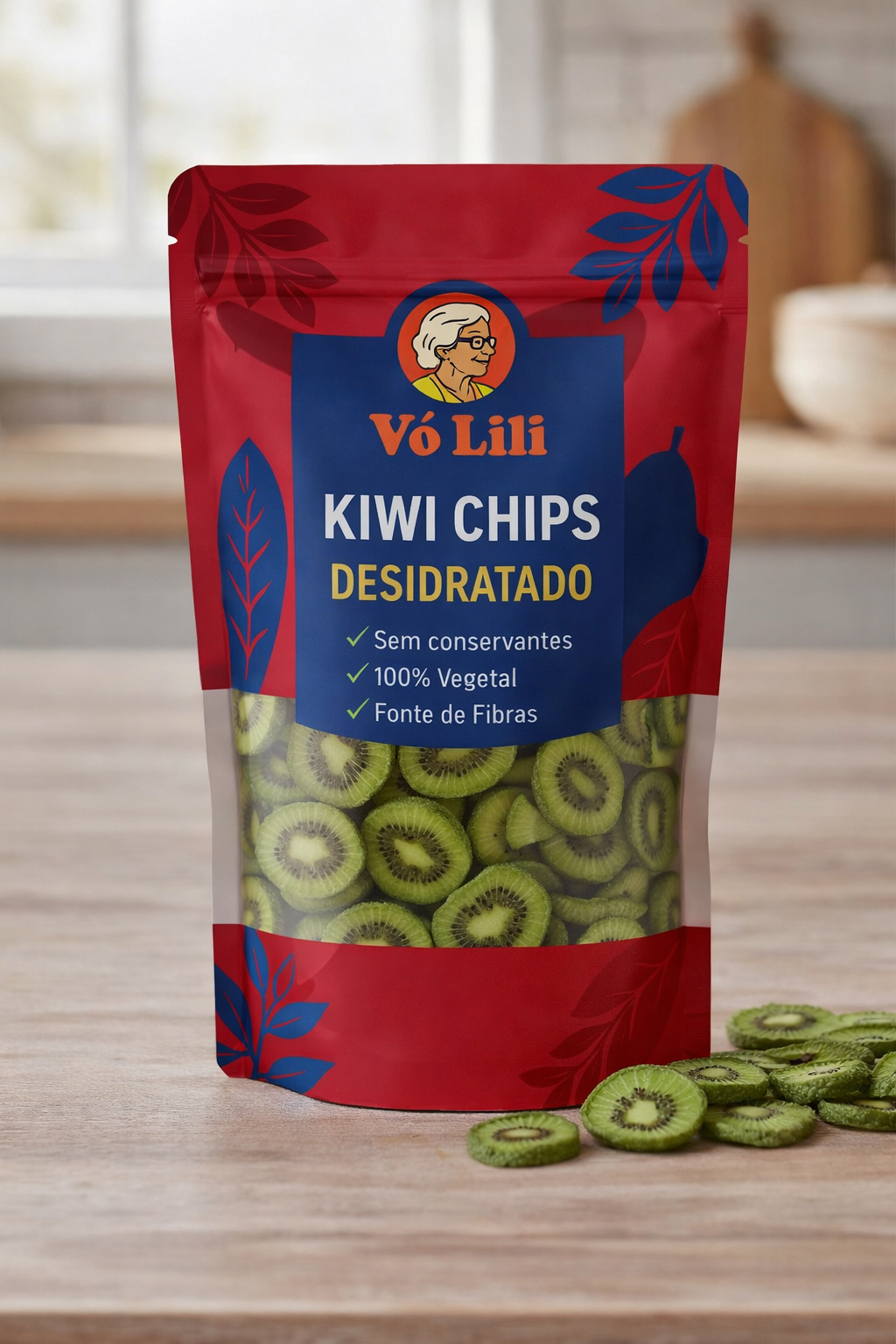 O Kiwi Desidratado VĂł Lili Fruts é feito apenas com fatias reais de kiwi, desidratadas lentamente para preservar o cor vibrante, o sabor original e os nutrientes da fruta â sem açĂșcar adicionado, sem conservantes, sem corantes.