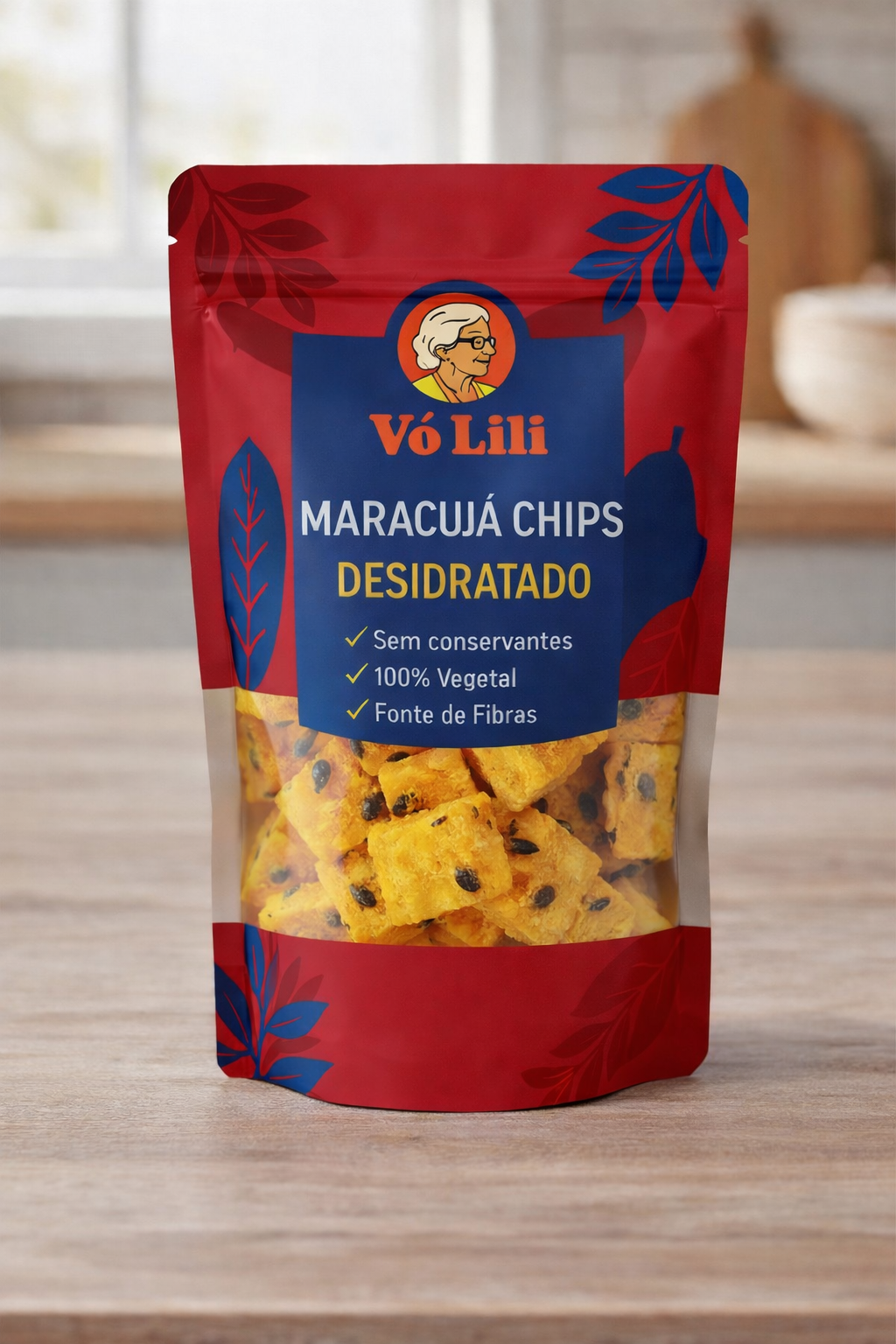 O Maracujá Chips Vó Lili é feito apenas com fruta fresca, cuidadosamente desidratada para preservar seu aroma marcante, sabor ácido-doce e textura crocante — tudo isso sem açúcar, sem conservantes e sem aditivos .